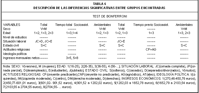 Tabla 6. Descripción de las diferencias significativas entre grupos encontradas.