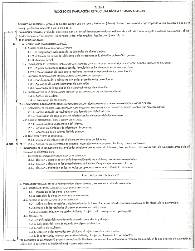 - Desde un punto de vista general, Sloves, Doherty y Schneider (1979, pp. 30-32) han propuesto un modelo bastante completo de la evaluación como un proceso científico de solución de problemas: "El proceso de solución de problemas consta de seis fases secuenciales e interrelacionadas que el evaluador psicológico puede utilizar: (a) clarificación del problema, (b) planificación, (c) desarrollo, (d) puesta en marcha, (e) determinación de los resultados, y (f) diseminación" (p. 30).