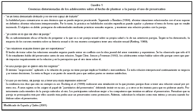 Cuadro 1. Creencias distorsionadas de los adolescentes sobre el hecho de plantear a la pareja el uso de preservativo