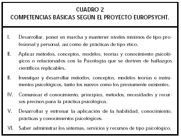 Cuadro 2. Comtetencias básicas según el proyecto Europsycht.