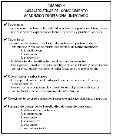Cuadro 4. Características del conocimiento académico-profesional integrado.
