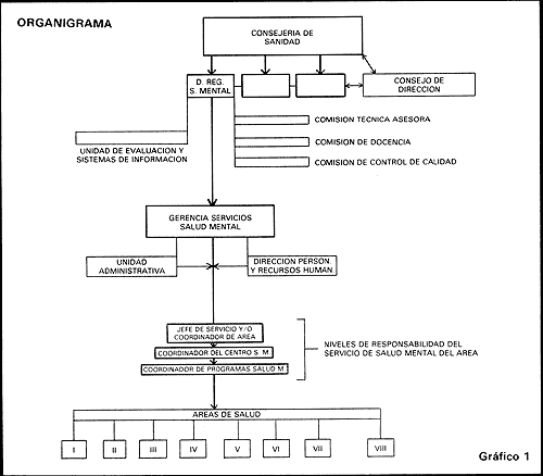 La fase siguiente, que se corresponde con la elaboración de estrategias y la ejecución de programas, fue la creación de la Dirección Regional para la Reforma de la Atención a la Salud Mental. Significó contar con una estructura técnico-administrativa con funciones de planificación, de organización de Servicios y con línea de autoridad sobre todos los Servicios de Salud Mental dependientes de la Comunidad Autónoma. (Véase sus funciones en el Decreto 113/1985, "Boletín del Principado", de fecha 10-1-86.) Se trata de una estructura integrada dentro del propio Organigrama de la Consejería de Sanidad, en el cual se establecen las articulaciones y los dispositivos de enlace con otras Direcciones, que tiene una definición temporal hasta tanto se considere que el trabajo esencial de la reforma haya concluido, momento en el cual se redefinirá la organización central de Salud Mental.