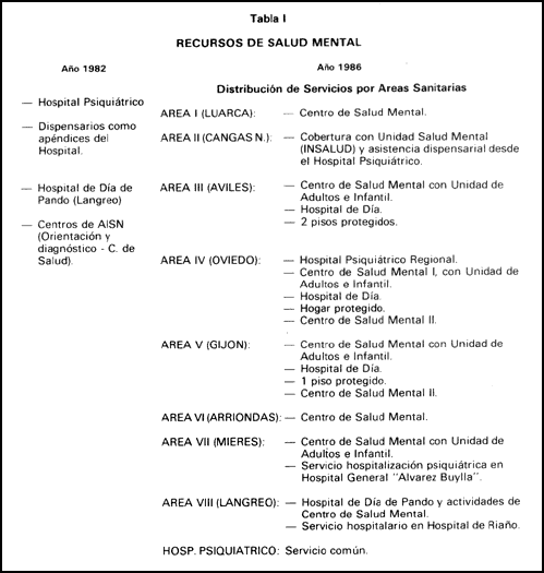 Como ya es conocido, en Asturias se inició, hace tres años, una reforma de la asistencia psiquiátrica, dependiente de la Administración Autonómica, tendente a desarrollar un modelo integrado de Servicios de Salud Mental, implantados en la Comunidad, descentralizados y diversificados y, consiguientemente, a superar la situación preexistente centrada en el Hospital Psiquiátrico Regional (véase información más detallada de esa situación en: García, J.: 1983 - l).