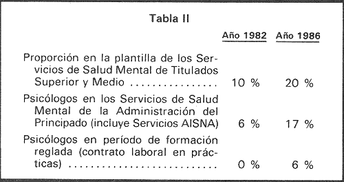 Frente a la dotación uniforme y poco cualificada de las plantillas del Hospital Psiquiátrico, los nuevos Servicios incluyen una plantilla más diversificada, con la incorporación de nuevos profesionales, en los que va cambiando sustancialmente el nivel profesional y la cualificación. Se les presupone, en función de su titulación y formación complementaria, una mayor preparación e información. (Ver Tabla II)