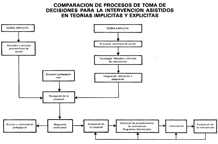 Cuadro 2. Comparación de procesos de toma de decisiones para la intervención asistidos en teorías implícitas y explícitas.