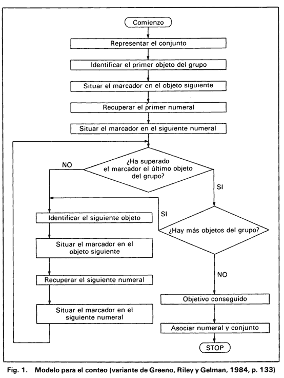 Greeno, J.; Riley, M. y Gelman, R.: Conceptual competence and children's counting. Cognitive Psychology, 1984,16, 94-143.