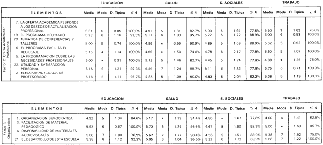 Cuadro 3 y 4. Factor 2: Oferta Académina/ Profesional y Factor 3: Organización.