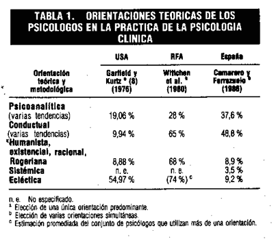 Tabla 1. Orientaciones teóricas de los psicólogos en la práctica de la Psicología Clínica.