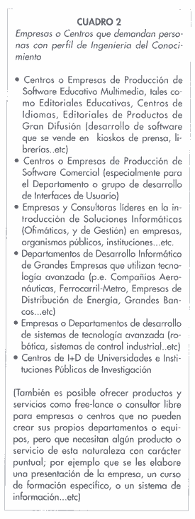 Cuadro 2. Empresas o centros que demandan personas con perfil de ingeniería del conocimiento.