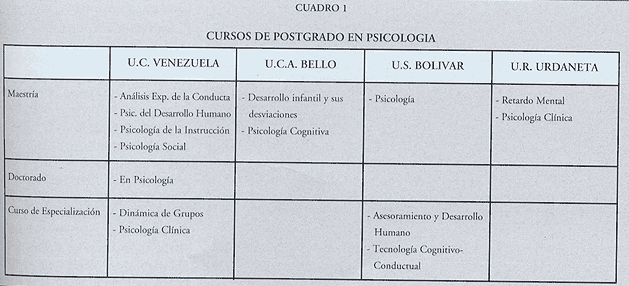 Cuadro 1. Cursos de Postgrado en Psicología.