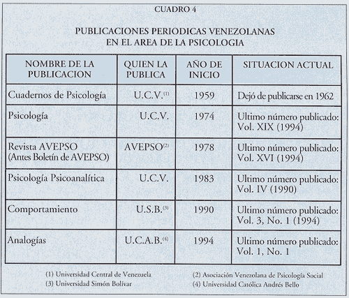 Cuadro 4. Publicaciones periódicas venezolanas en el área de la psicología.