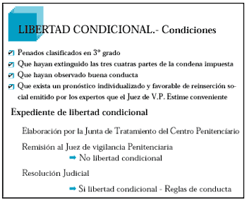 - "Está especialmente atribuido al Juez de Vigilancia Penitenciaria aprobar la libertad condicional en todas sus variantes".