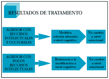 En todos los casos de agresores sexuales se propone que realicen tratamiento psicológico para producir una mejoría en su estabilidad psíquica, siendo conscientes que si el agresor posee recursos intelectuales y culturales más elevados, es capaz de modificar los criterios alterados a nivel cognitivo si bien el cambio a nivel emocional y comportamental es más difícil. A medida que desciende el nivel de recursos del agresor existe más resistencia a una modificación, aunque sólo sea a nivel cognitivo, de las ideas que rigen su concepto de los roles masculino y femenino. El pensamiento de estos sujetos, debido a su escasez de recursos, es más rígido y estereotipado de lo normal. Su resistencia al cambio se fundamenta en la imposibilidad de hacer un análisis racional de los principios que han motivado la oposición y persistencia de dichas ideas.