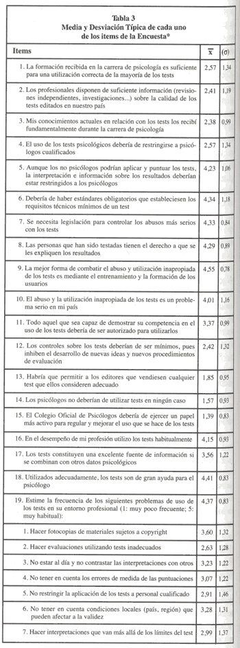 * Tabla 3. Media y Desviación Típica de cada uno de los items de la Encuesta.