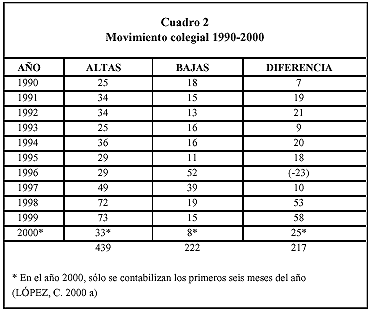 Cuadro 2. Movimiento Colegial 1990-2000.