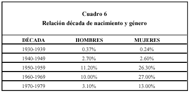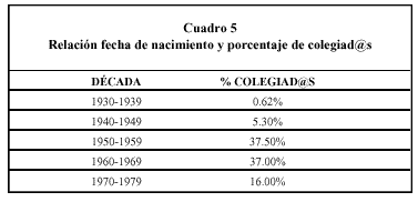Cuadro 5. Relación fecha de nacimiento y porcentaje de colegiad@s.