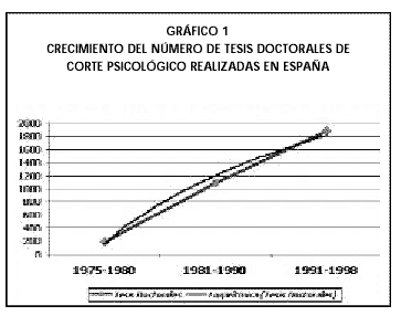 Un primer estudio de la evolución del número de tesis doctorales en psicología en los últimos 23 años demuestra el ascenso que se ha producido en la investigación psicológica en todas las universidades españolas, específicamente en los últimos diez años, donde llegan a duplicarse el número de tesis doctorales. Éstos no se realizan únicamente desde facultades de psicología, las ciencias médicas y las relacionadas con la educación comparten estrechos intereses temáticos.