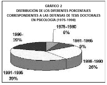 Gráfico 2. Distribución de los diferentes porcentajes correspondientes a las defensas de tesis doctorales en psicología.