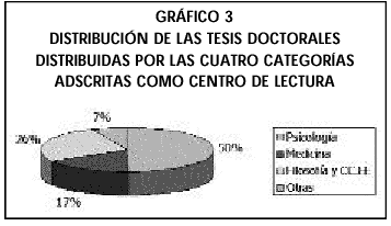 Gráfico 3. Distribución de las tesis doctorales distribuidas por las cuatro categorías adscritas como centro de lectura.