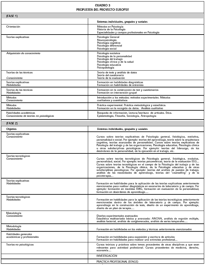 Cuadro 3 . Propuesta del proyecto Europsy.