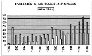 Gráfico 2. Evolución Altas/Bajas C.O.P. Aragón.