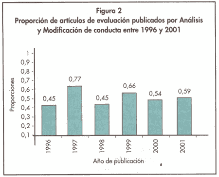 Figura 2. Proporción de artículos de evaluación publicados por Análisis y Modificación de conducta entre 1996 y 2001.